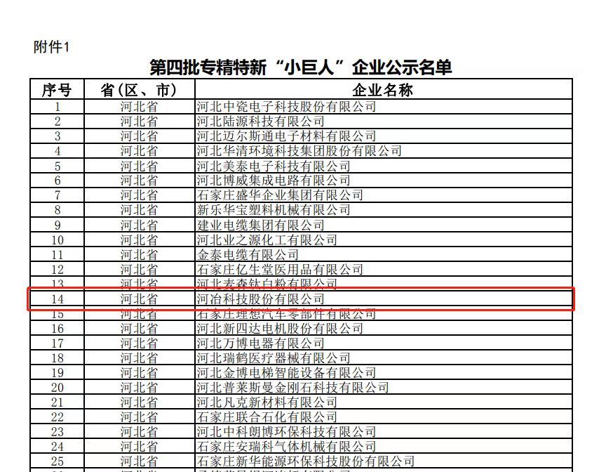 河冶科技股份有限公司獲得國家級專精特新“小巨人”認(rèn)定
